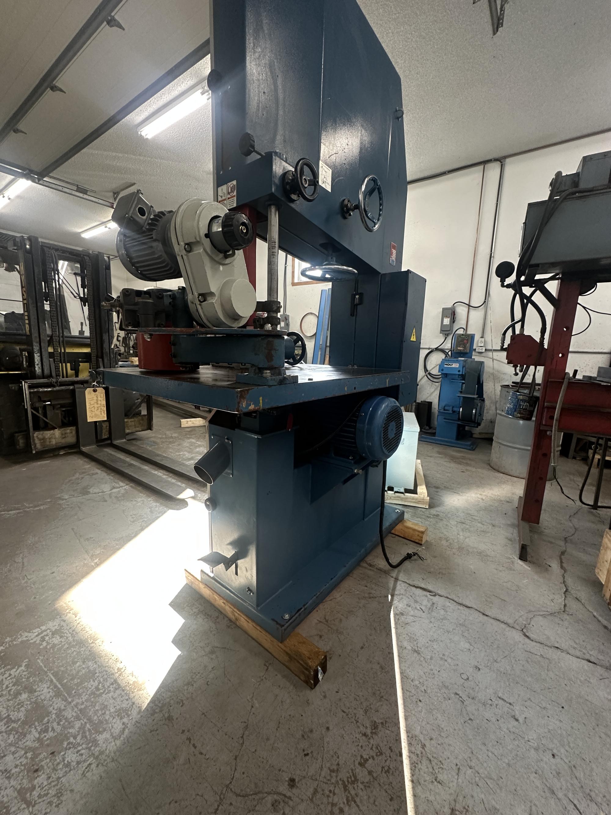 La tension de la lame peut être ajustée par un volant. Une échelle de tension permet à l'opérateur d'ajuster correctement la tension pour différentes largeurs de lames.