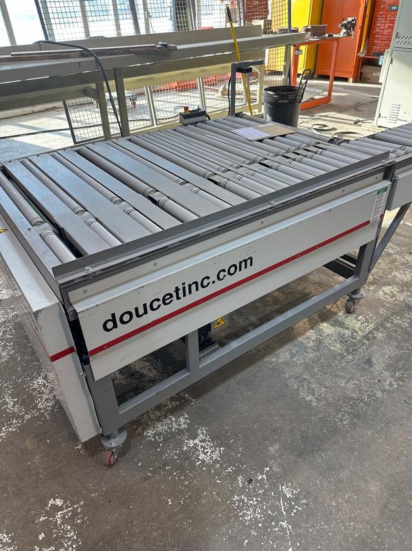 Convoyeurs de réception et de retour à rouleaux à vitesse variable de 40 à 120 pieds par minute.